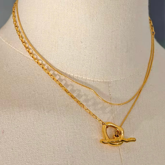Abstract Double Layer OT Buckle Necklace - Gold