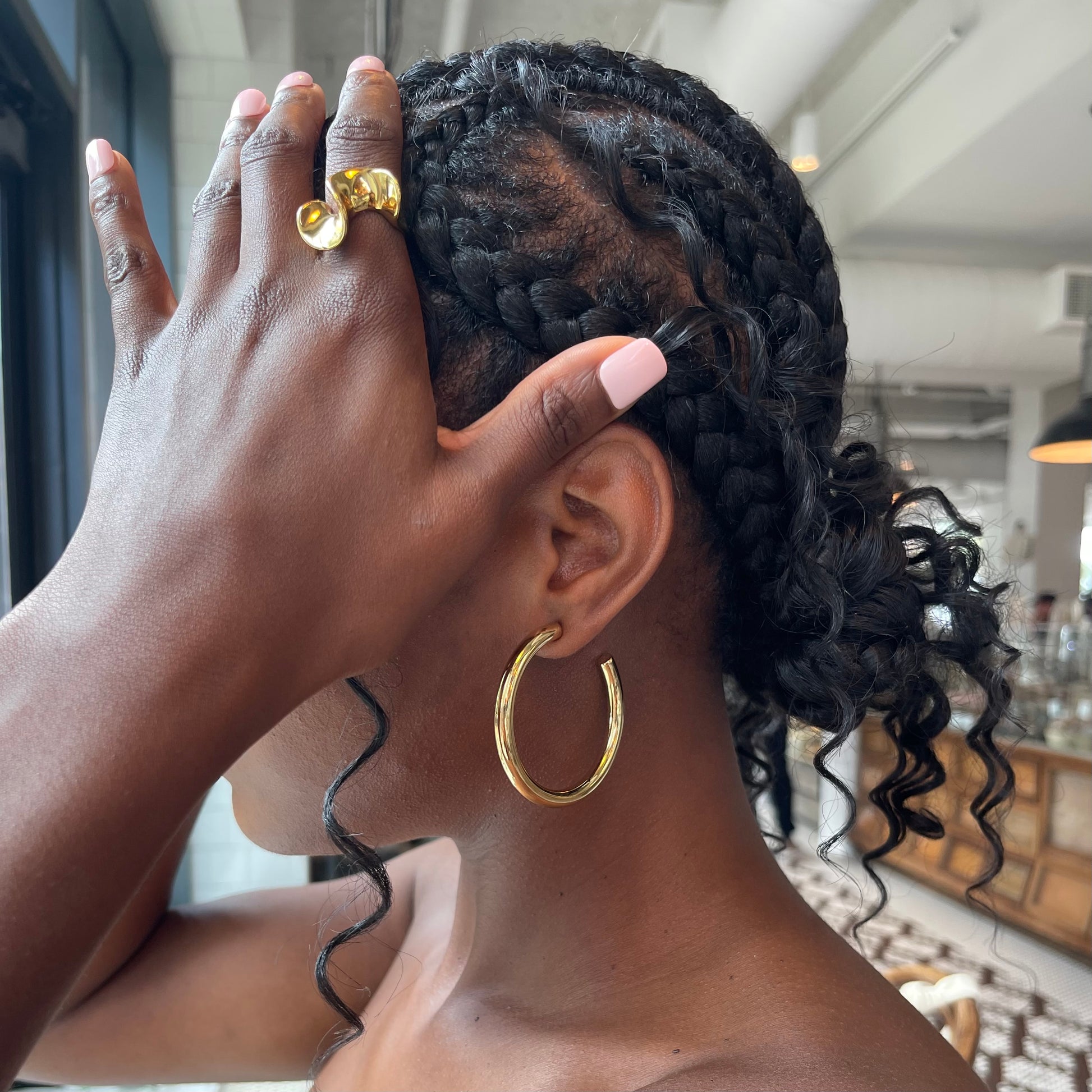 The 50mm Classic Thick Hoops are for the days when subtle just isn’t the vibe. With a bold, chunky silhouette and high-shine finish, these gold statement hoops instantly pull together any outfit whether you’re headed to a dinner reservation, a photoshoot, or just showing up like the main character on a regular Tuesday.