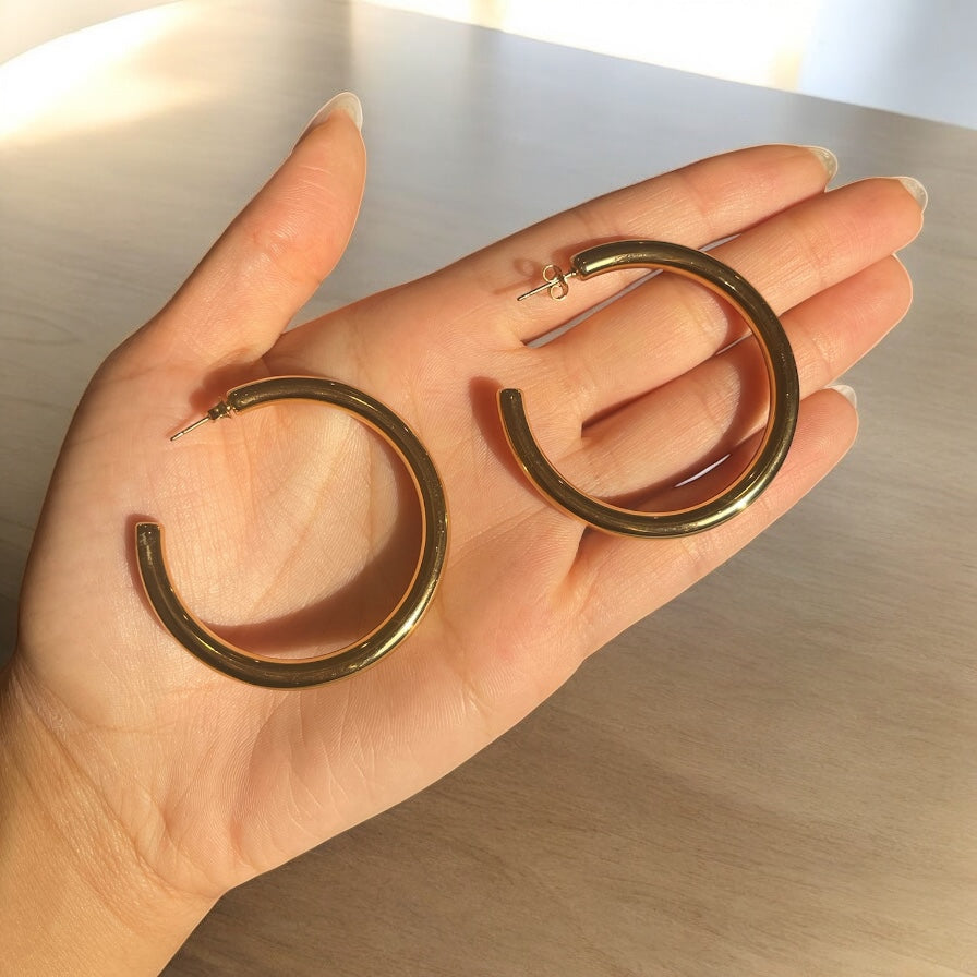 Made from hypoallergenic and waterproof materials, these chunky gold hoop earrings deliver all the drama without any discomfort. They're lightweight, durable, and built to stand out.