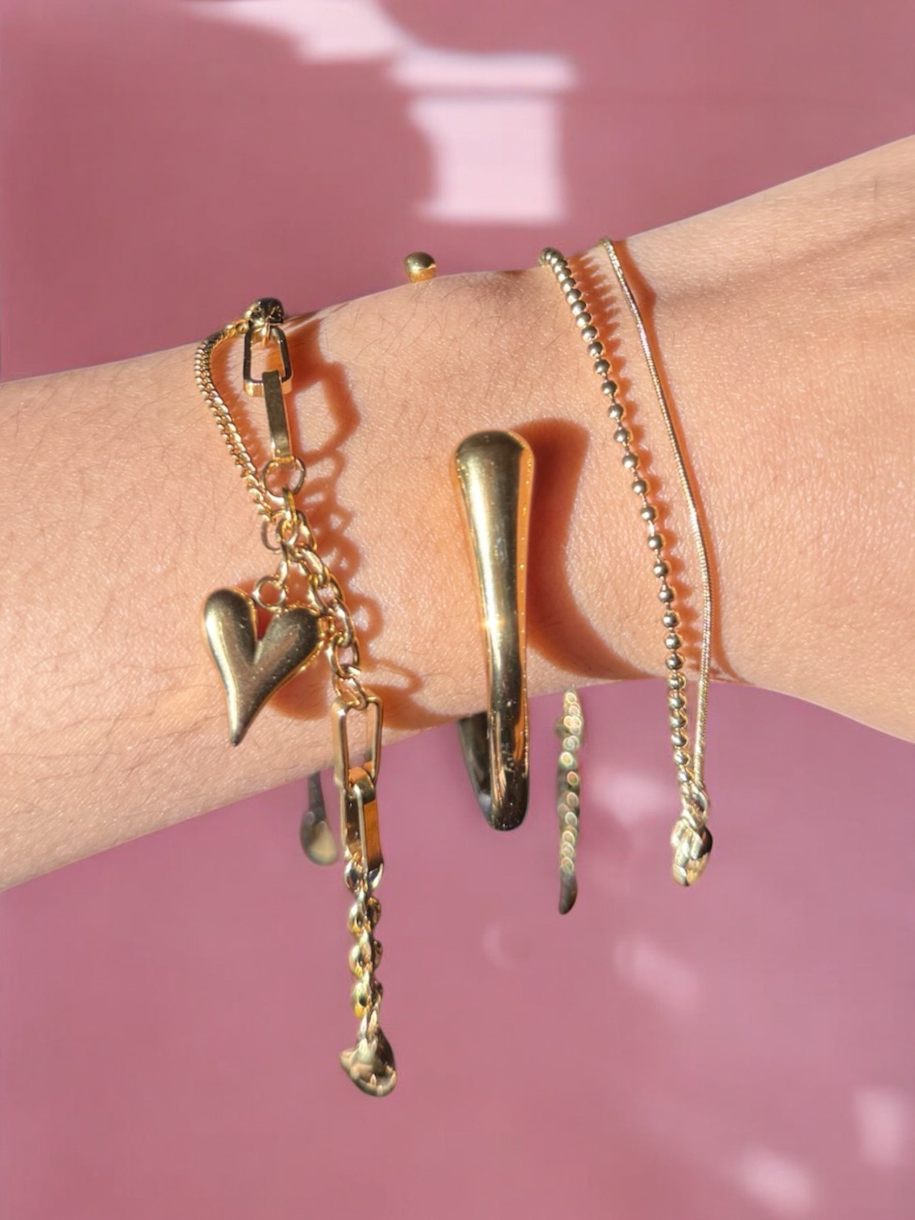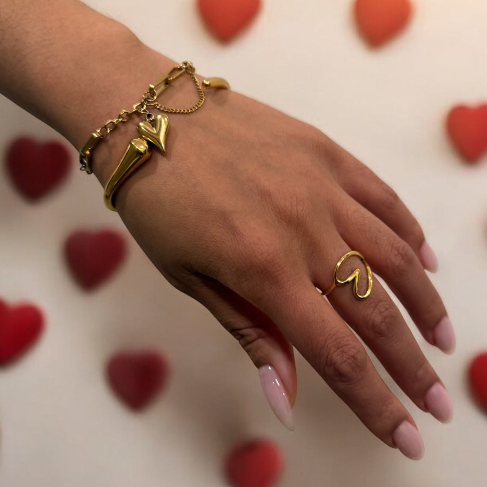 Photographed with the Heart Charm Chain Bracelet, the Flat and Beaded Chain Bracelet, and the Hollow Heart Ring. Styles sold individually.