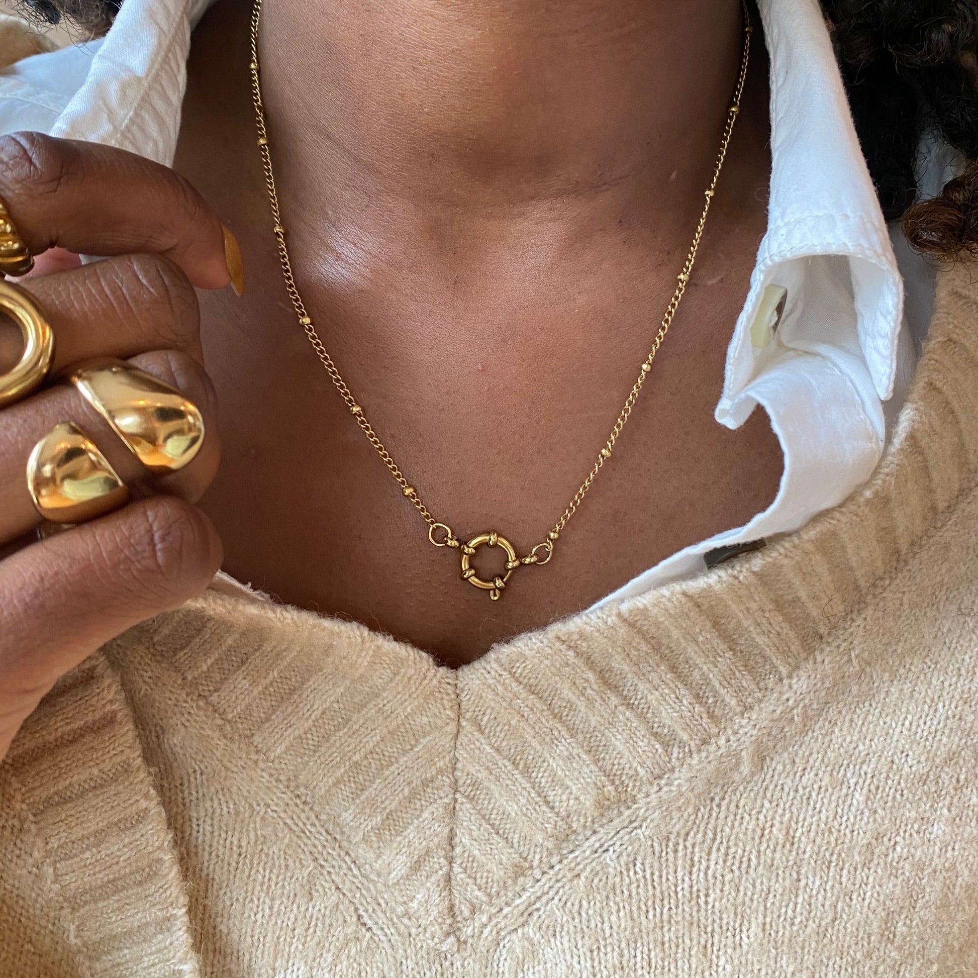 Beaded Anchor Clasp Necklace - Antique Gold | The Consciously Lisa Collection