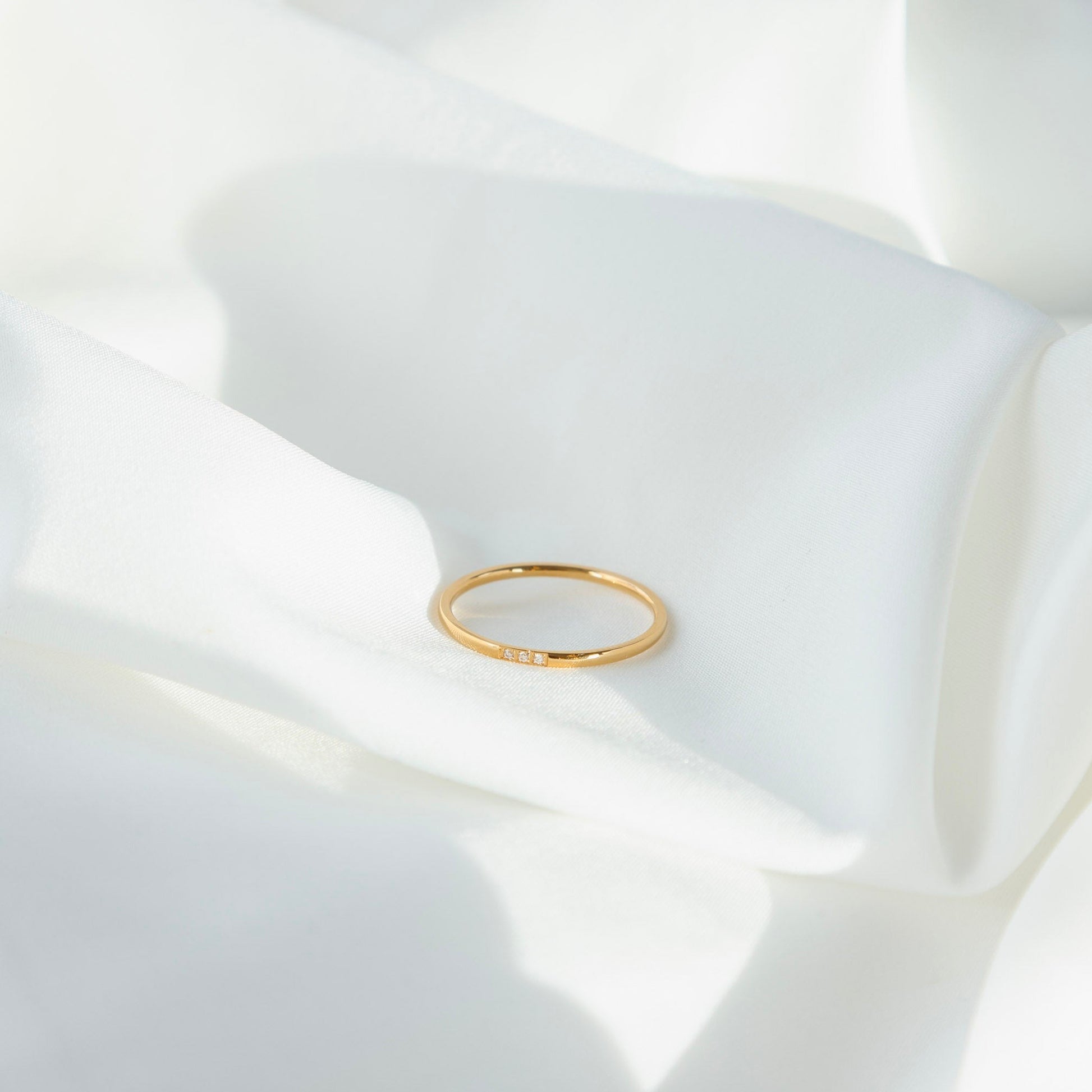 Elevate your look with our Dainty 3 Stone Band Ring in elegant gold. Featuring 3 sparkling cubic zirconia stones, this delicate ring adds a touch of luxury to any outfit. Perfect for stacking with other pieces or wearing alone, it's a must-have addition to your jewelry collection.