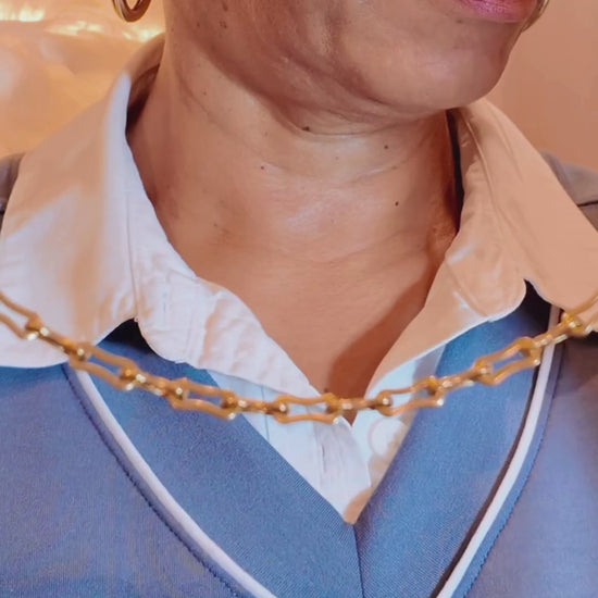 The Sculpted Link Necklace is that quiet-luxury piece that speaks volumes without saying too much. Its fluid, sculptural links hug the neckline in a way that feels both modern and timeless, making it a true foundation piece for your jewelry wardrobe. Slip it on, and you’ll instantly look more put together, even in the simplest outfit.
