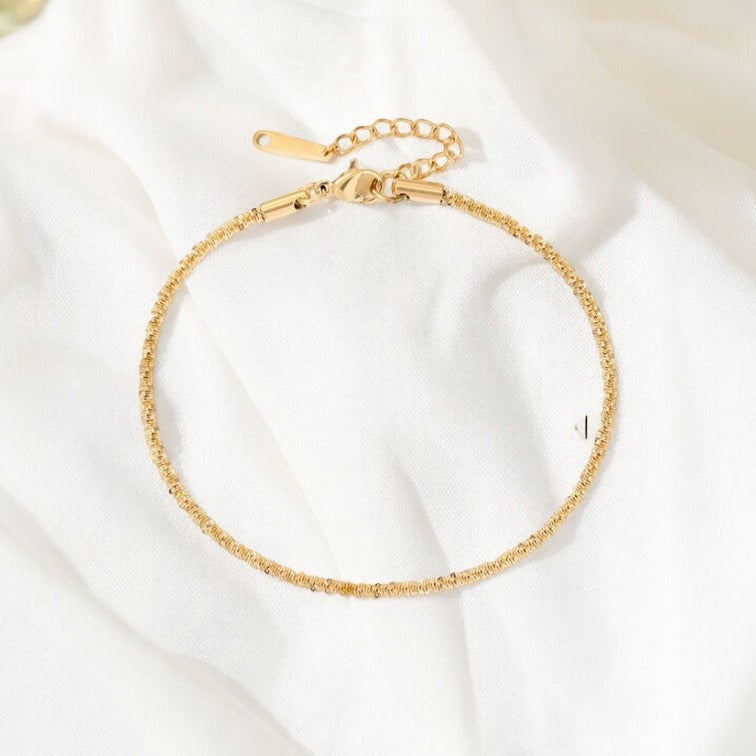 This gold snake chain anklet is a classic and clean addition to your summer wardrobe. It’s offers a very subtle sparkle. Perfect for a day at the beach or a night out in heels, it is a gorgeous accessory that will elevate any outfit. Don't miss out on this essential piece for the season! Additional complimentary chain extender included.