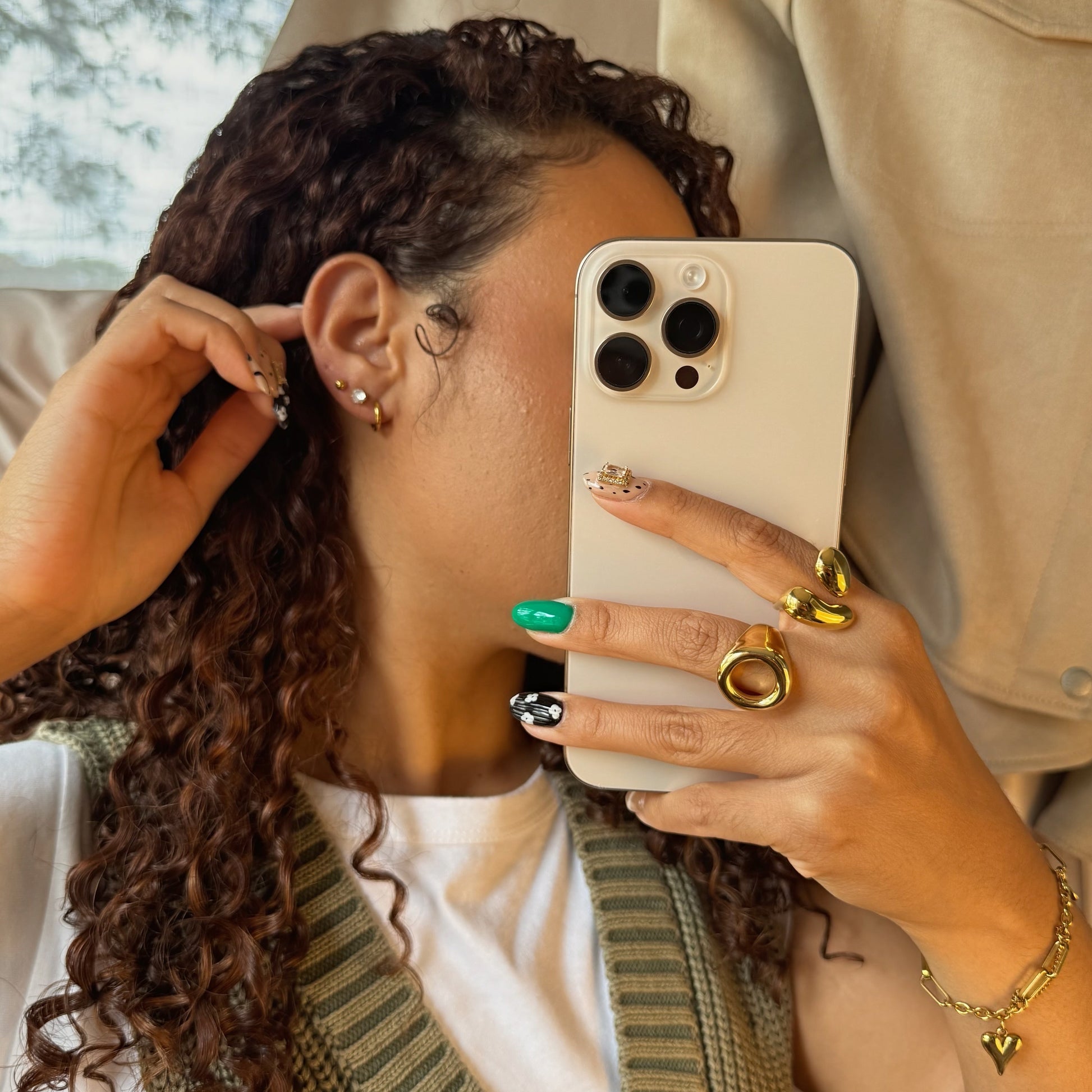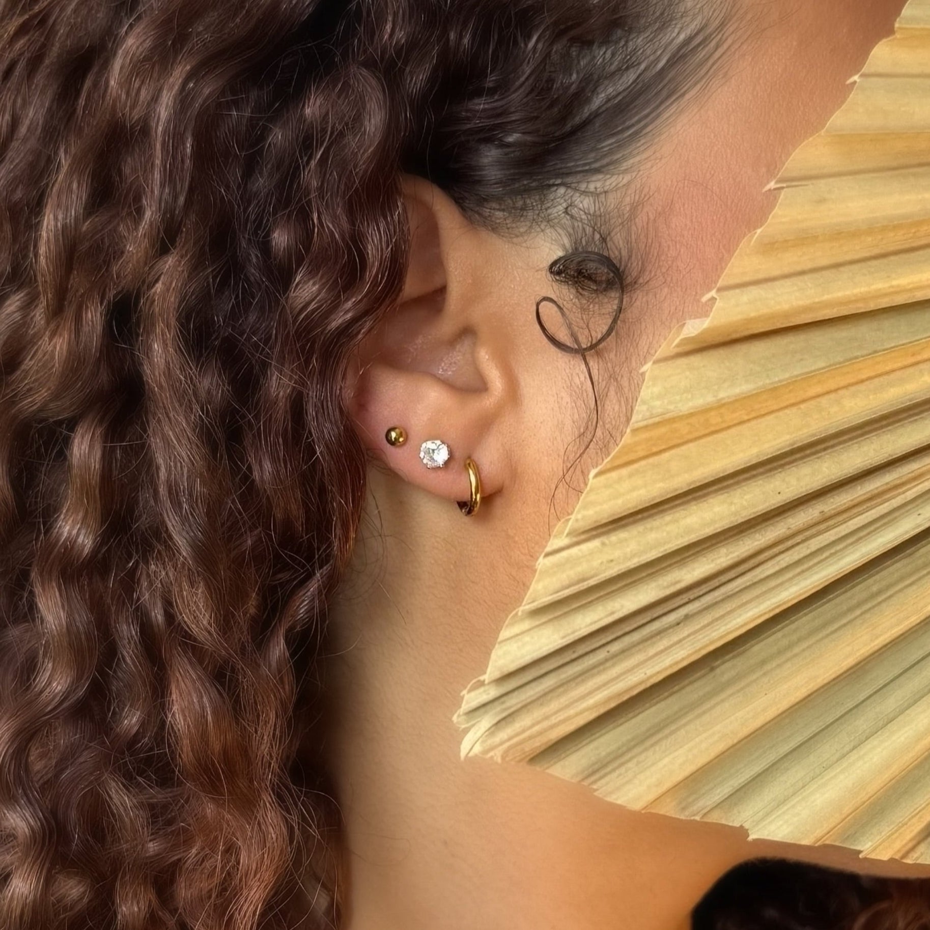 This three-piece earring set features a smooth gold huggie hoop, a brilliant gem stud, and a sleek gold ball stud made to mix, match, and stack however you like. Whether you're heading to the office, grabbing brunch, or dressing up for date night, The Daily Stack keeps your ear game clean, balanced, and effortlessly put together.