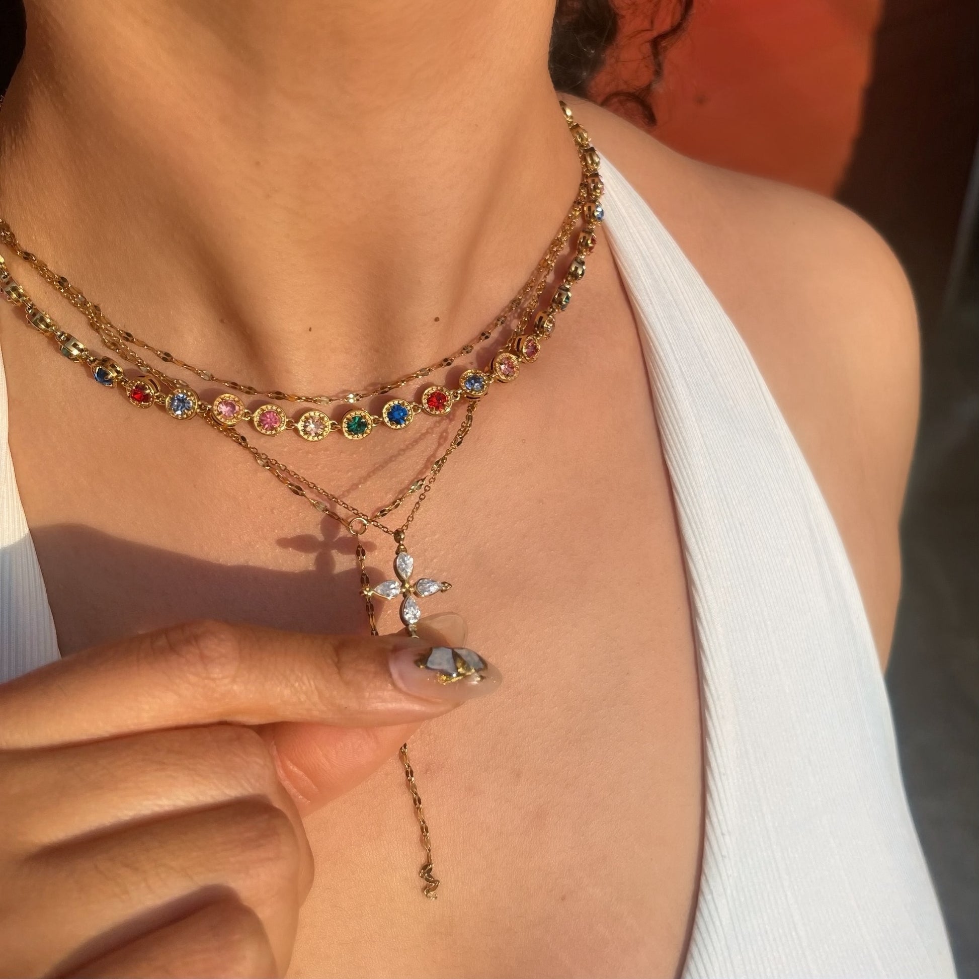 ✨ The Minimal Multicolor Gemstone Necklace adds a touch of subtle color and joy. Perfect for sunshine strolls, lighthearted laughs, and days that feel like a vibe.