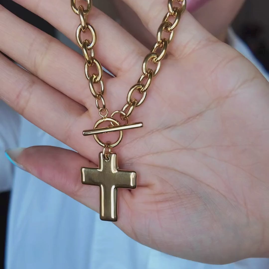 Bold Cross OT Clasp Necklace - Gold