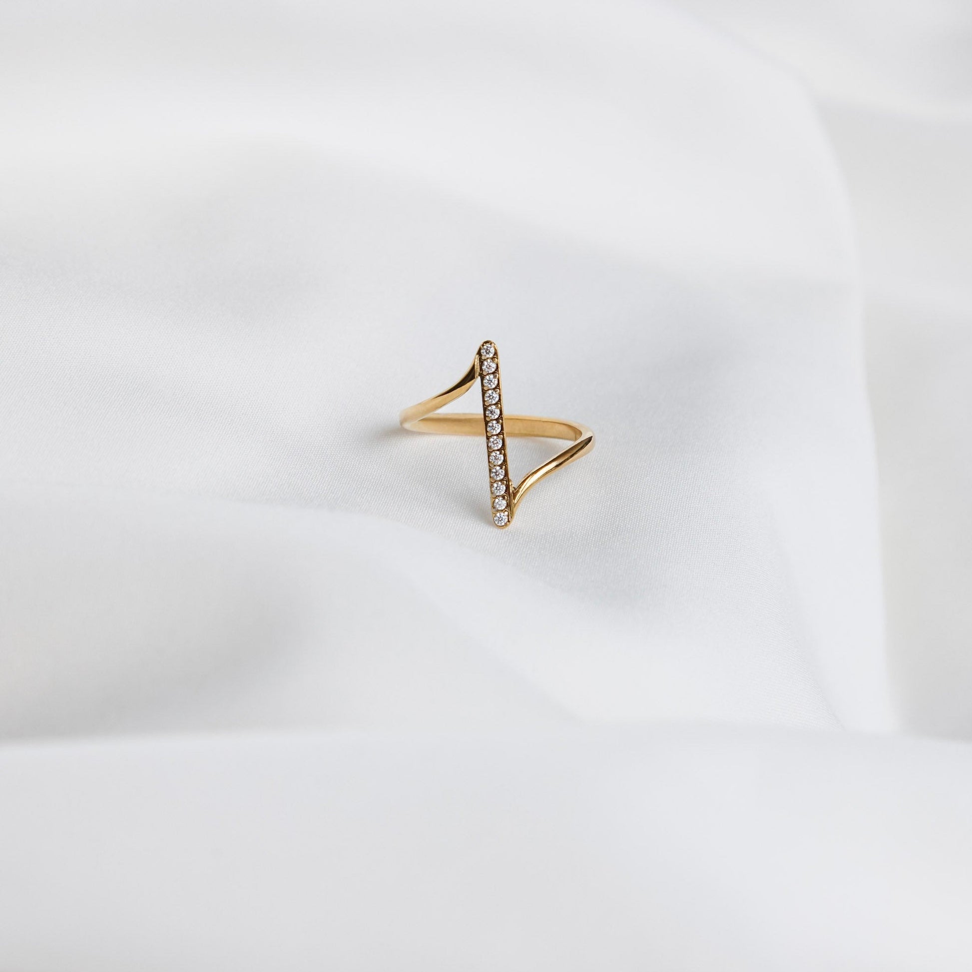 Make a statement with our Line Ring in Gold. Adorned with sparkling cubic zirconia gemstones, it's perfect for adding some eye-catching bling to your middle finger or for a stylish midi look. Clean and bold, it's versatile for day or night wear.