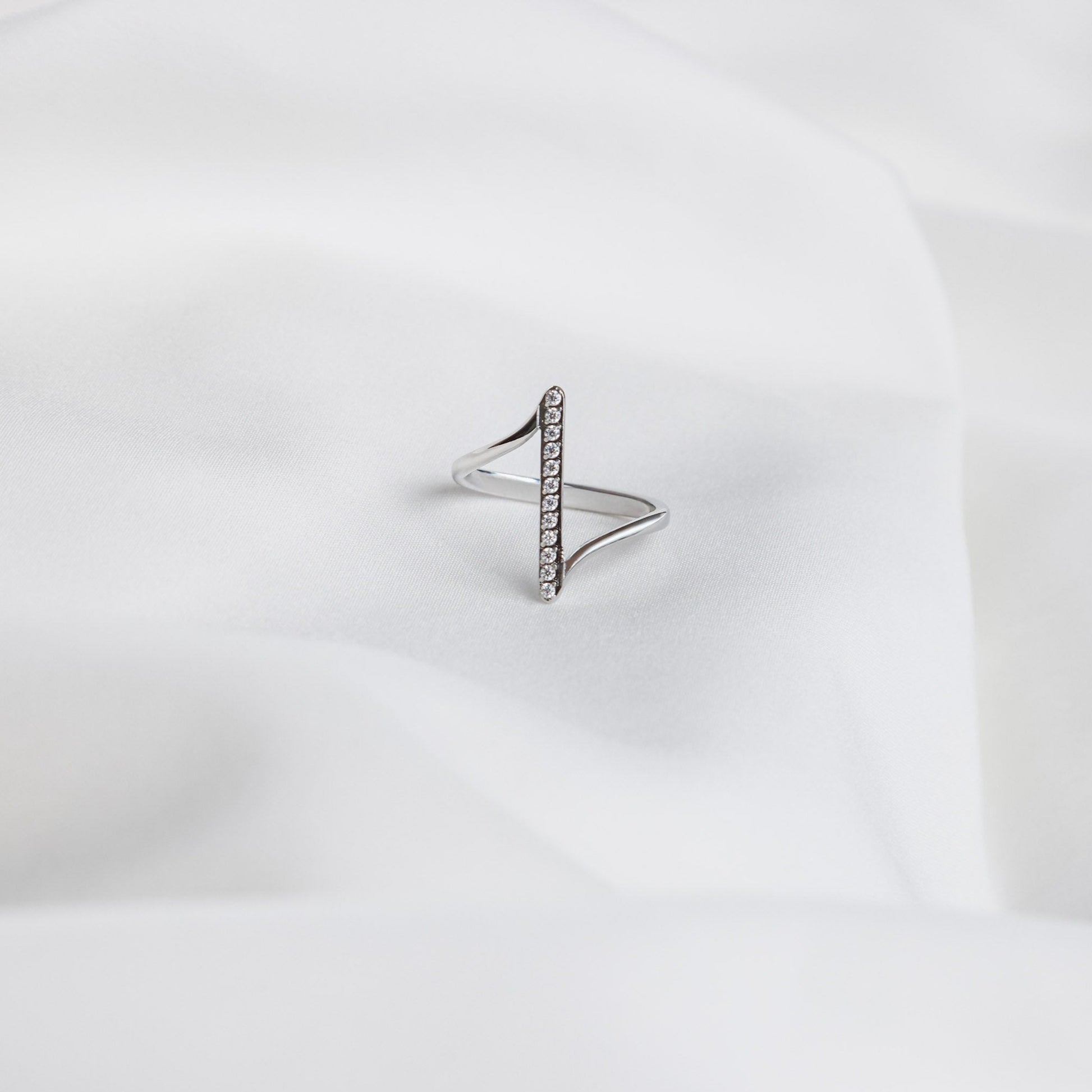 Make a statement with our Line Ring. Adorned with sparkling cubic zirconia gemstones, it's perfect for adding some eye-catching bling to your middle finger or for a stylish midi look. Clean and bold, it's versatile for day or night wear.